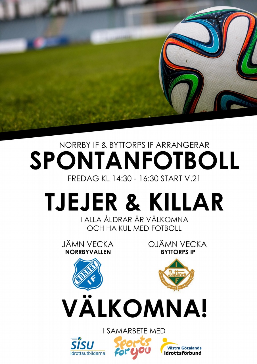 Norrby IF, Byttorps IF, SISU och Sports for you annordnar spontanfotboll på fredagar